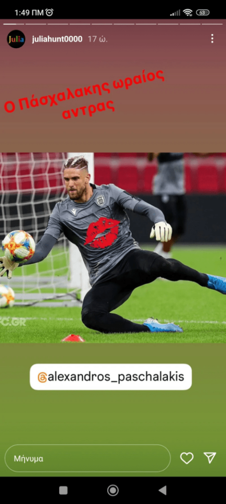 Αυτή τη φορά, η άλλοτε «απόλυτη σταρ» έστειλε… διαδικτυακό μήνυμα στον Αλέξανδρο Πασχαλάκη, τερματοφύλακα του Ολυμπιακού, και το αποτέλεσμα δεν θα μπορούσε να περάσει απαρατήρητο.