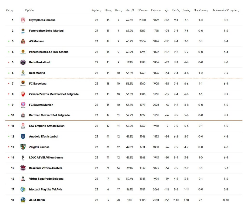 Παρά την ήττα, ο Ολυμπιακός παραμένει εντός της πρώτης τετράδας, με διαφορά ασφαλείας από τις ομάδες που τον καταδιώκουν. Ωστόσο, για να διατηρήσει τις πιθανότητες για την κορυφή, θα πρέπει να βελτιώσει την απόδοσή του στα επόμενα παιχνίδια και να ελπίζει σε στραβοπατήματα της Φενέρμπαχτσε.