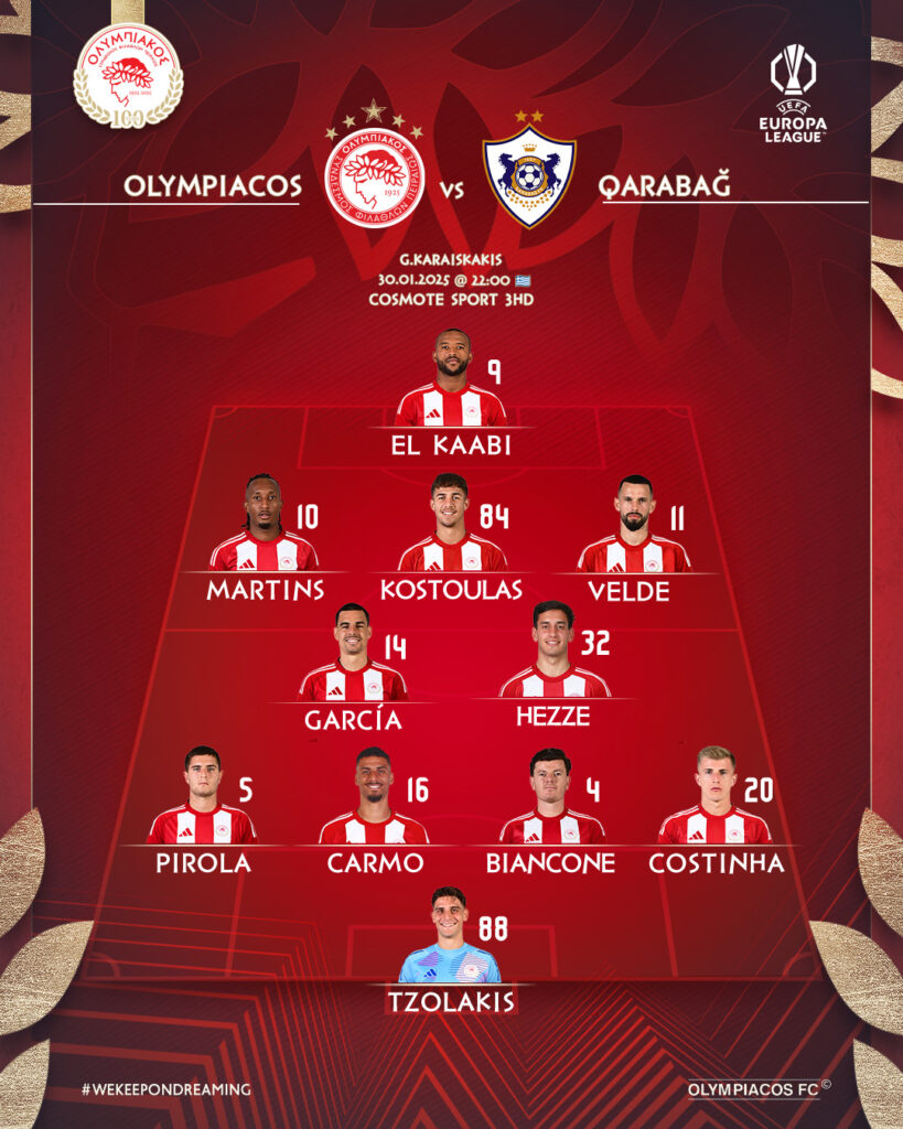 🔴 Στην επίθεση, ο Μεντιλίμπαρ επιλέγει τους Βέλντε, Κωστούλα και Ζέλσον πίσω από τον μοναδικό προωθημένο Ελ Κααμπί.