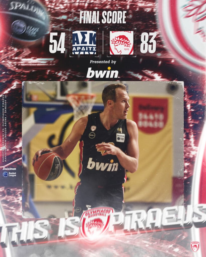 Ένα εύκολο βράδυ είχε ο Ολυμπιακός στην Καρδίτσα απέναντι στην ομώνυμη ομάδα και λίγες ημέρες πριν το παιχνίδι με την Βαλένθια στο ΣΕΦ που θα γίνει την Παρασκευή (15/12, 21:15) για την 14η αγωνιστική της Euroleague.