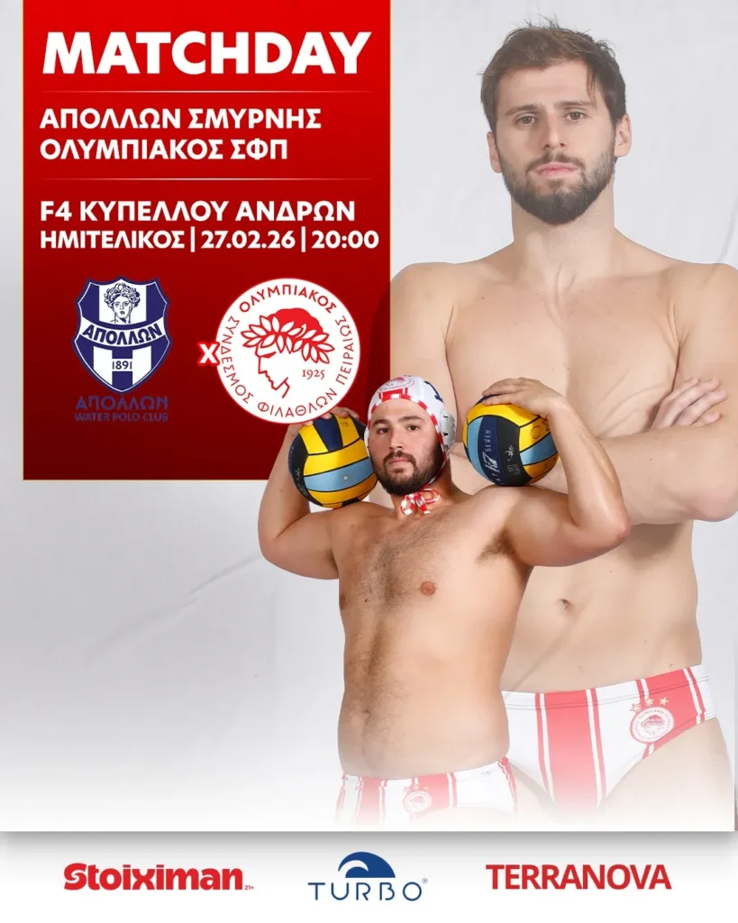 Το πρώτο και καθοριστικό εμπόδιο στον δρόμο για την κούπα ακούει στο όνομα Απόλλων Σμύρνης. Οι δύο ομάδες θα τεθούν αντιμέτωπες στις 20:00, με την αναμέτρηση να μεταδίδεται ζωντανά από το ERT Sports 1. Το παιχνίδι θα διεξαχθεί στο κολυμβητήριο της Στρατιωτικής Σχολής Ευελπίδων, με μοναδικό στόχο για τους «ερυθρόλευκους» τη νίκη που θα τους δώσει το «εισιτήριο» για τον μεγάλο τελικό του Σαββάτου (28/2, 17:30).