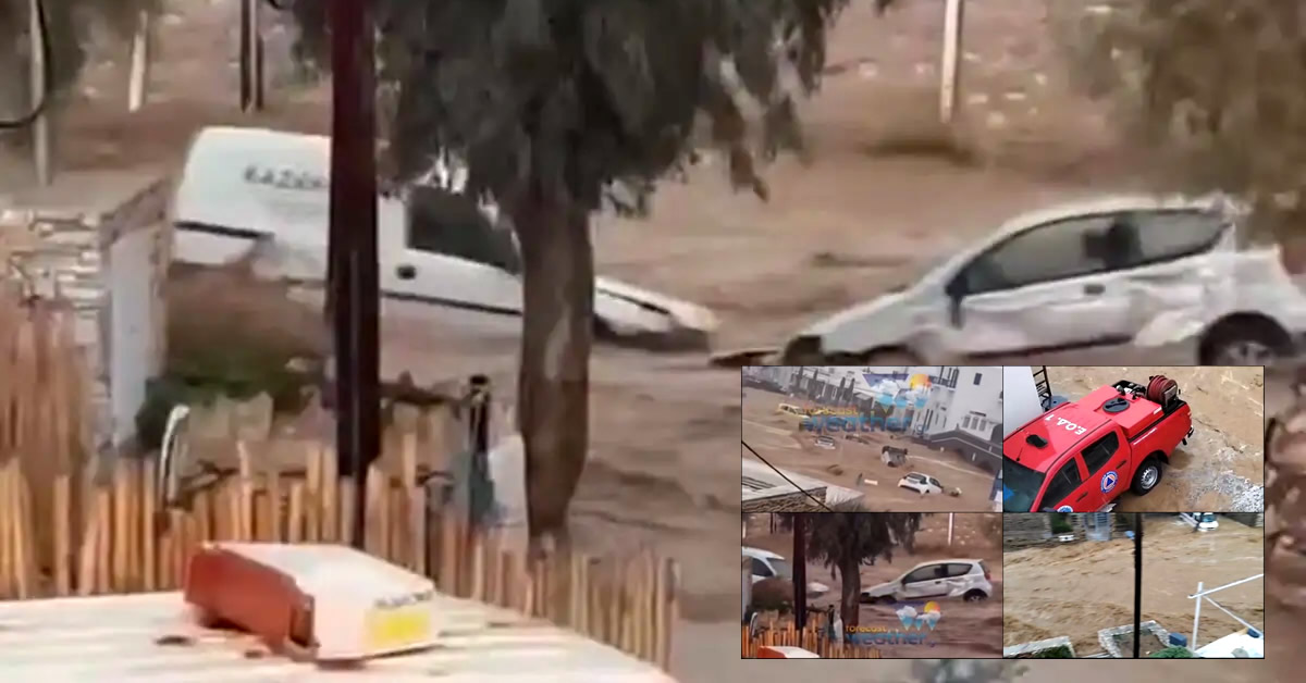 Ισχυρά καιρικά φαινόμενα πλήττουν από το βράδυ της Κυριακής τις Κυκλάδες, με την Πάρο και τη Μύκονο να βρίσκονται στο επίκεντρο της κακοκαιρίας. Βροχές και καταιγίδες μεγάλης έντασης έχουν προκαλέσει σοβαρά προβλήματα, με πλημμυρισμένους δρόμους, κατολισθήσεις και παρασύρσεις οχημάτων.