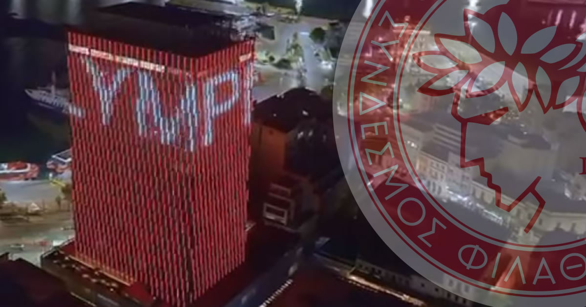 «Ο Πύργος του Πειραιά στα «ερυθρόλευκα»!! Αύριο το βράδυ ο Πύργος του Πειραιά θα παραμείνει φωτισμένος συμμετέχοντας στη μεγάλη γιορτή της πόλης μας για τον ιστορικό αγώνα του Ολυμπιακού μας στον τελικό του Europa Conference League!»