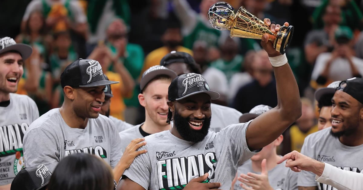 Ο Jaylen Brown, ο οποίος κέρδισε το βραβείο Larry Bird ως MVP των Τελικών της Ανατολικής Περιφέρειας. Ο σούπερ σταρ των Celtics σημείωσε 29 πόντους, με μέσο όρο 29,8 πόντους ανά αγώνα με 52% ευστοχία και 5 ριμπάουντ στα τέσσερα παιχνίδια της σειράς.