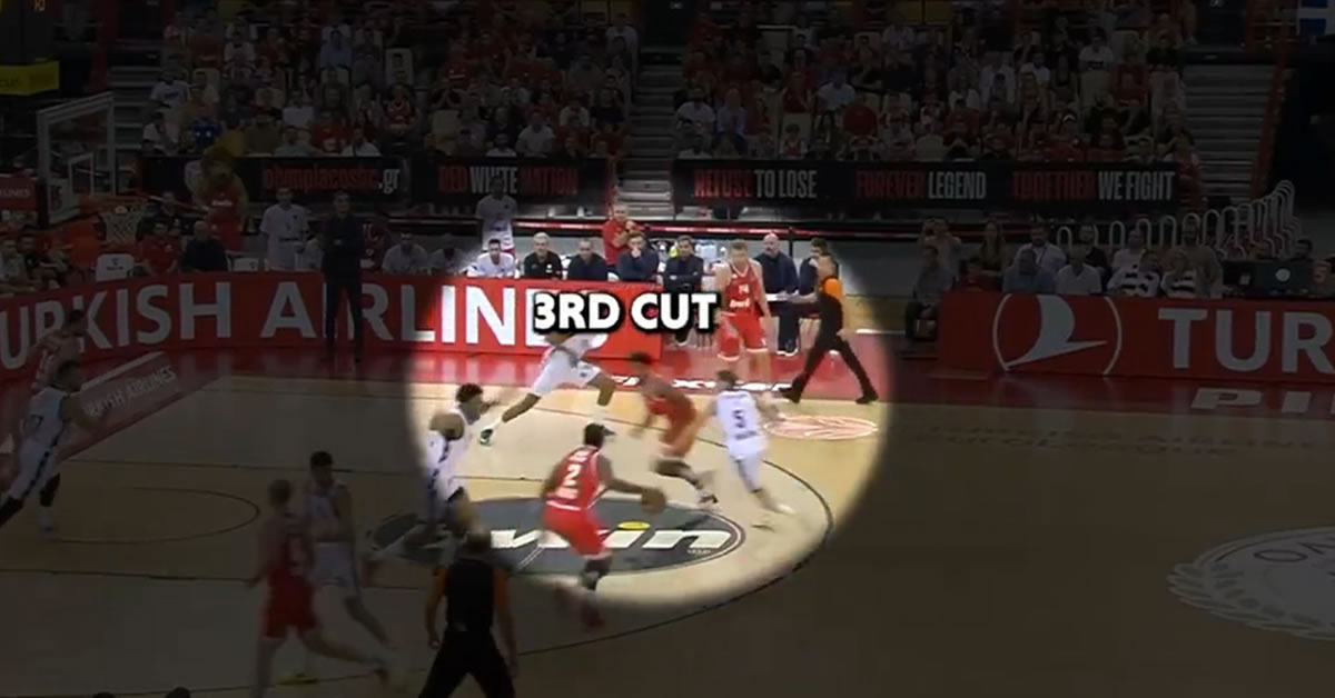 Ας το δούμε με περισσότερη λεπτομέρεια: οι παίκτες του Ολυμπιακού, ο ένας μετά τον άλλον, έκαναν τις κοψιές τους, σε μια επίθεση που περισσότερο έμοιαζε με ατέλειωτη «σκυταλοδρομία». Μήπως ο Μπαρτζώκας ήθελε απλώς να μπερδέψει τον αντίπαλο; Ή μήπως ήθελε να δοκιμάσει την υπομονή των θεατών που προσπαθούσαν να καταλάβουν τι στο καλό βλέπουν;