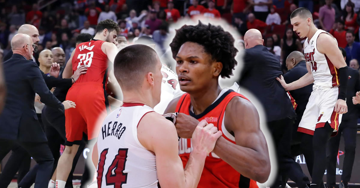 Το ντέρμπι ανάμεσα στους Ρόκετς και τους Χιτ ήταν γεμάτο δράμα, αλλά και… επεισοδιακή ένταση. Η ομάδα του Έρικ Σποέλστρα επικράτησε με 104-100, όμως η ένταση έφτασε στο αποκορύφωμά της στα τελευταία δευτερόλεπτα του αγώνα, όταν ο Τάιλερ Χίρο και ο Άμεν Τόμπσον αντάλλαξαν χτυπήματα, με τον παίκτη των Χιτ να καταλήγει στο έδαφος.